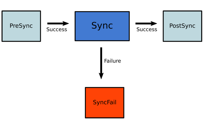 2. Sync hooks and regular resources run. If any fail, SyncFail hooks run